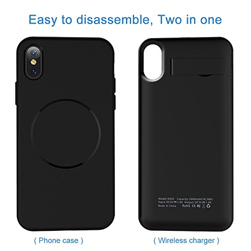 Mbuynow 5000mAh Custodia per batterie iPhone X con ricarica wireless Qi, supporto per la separazione di custodia e batteria, custodia di ricarica portatile estesa ricaricabile per iPhone X