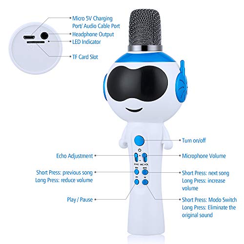 MICROFONI PORTATILI KARAOKE - Con il palmare portatile e il design leggero, questa è un'ottima soluzione di microfoni karaoke portatili. I bambini potevano cantare e suonare musica sempre e ovunque. Inoltre, l'adorabile design dei cartoni animati attira i bambini a prima vista, il che arricchirà il tempo libero dei bambini.