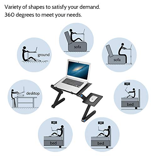 Mbuynow Supporto Alluminio Notebook Tavolino PC Pieghevole Notebook Computer Supporto per PC Portatile da Letto, Divano, Scrivania