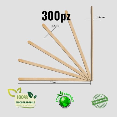 Precisione e Qualità: Con uno spessore di 1,5 mm e una larghezza di 0,5 cm, le nostre palette caffè legno sono progettate per essere perfette. Con 300 agitatori in ogni confezione, sarete pronti per innumerevoli tazze di caffè, per mescolare cocktail o per liberare il vostro lato creativo con arti e mestieri.
