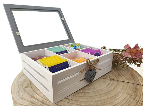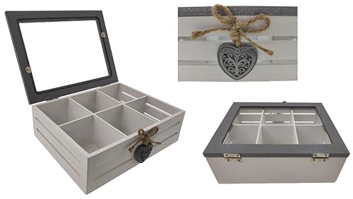 MC-Trend Scatola da tè bustine di tè, 6 scomparti in legno/vetro in un bellissimo design vintage