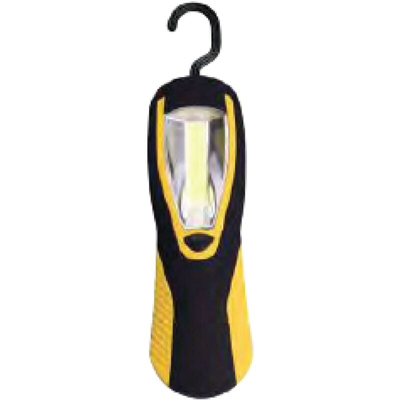 LAMPADA DA LAVORO LED SENZA FILO DA 180lm Lampada da lavoro Led senza filo da 180 lm. Corpo termoplastico dotato di magnete a gancio per appenderla. 3 batterie AA COLORE GIALLO e NERO .