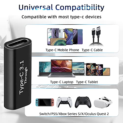 Mcbazel 2Pcs Accoppiatore USB C, Adattatore USB C da Femmina a Femmina, USB C 3.1, Connettore di Estensione PD da 100 W Supporto 4K Video e Audio, Ricarica Rapida e Trasferimento Dati 10Gbps