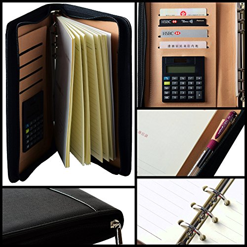 Mcbazel PU Leather Business multifunzione A5 Ring Bound Notepad Diario Diario di viaggio con Calcolatrice / penna Holder / ricevitore Slot di carte di credito Zipper Folder Organizer - Nero