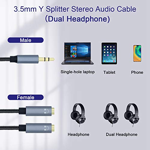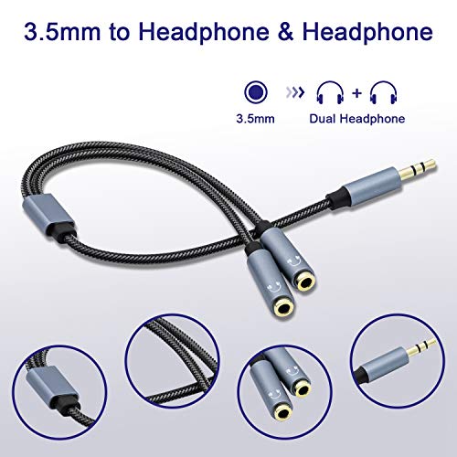 - 3.5mm Dual Headphone Jack Splitter Cable: Allow dual headphones/speakers connected to most devices with 3.5mm auxiliary port (AUX), like MP3 player, smartphone, tablet, computer etc. Great solution to share cool music, movies and games with your families and friends.