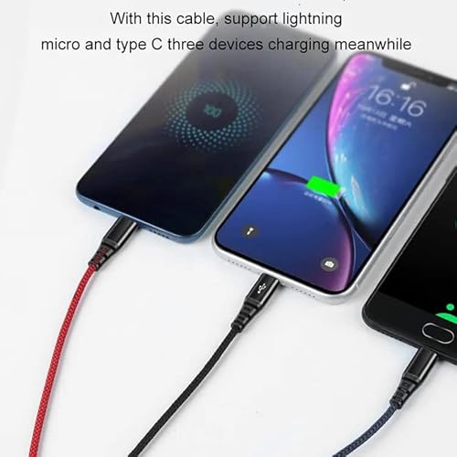 [Cavo multi USB per la ricarica simultanea di 3 dispositivi]: dotato di 3 tipi di porte (Lightning iOS/Type-C/Micro USB) può caricare rapidamente 3 dispositivi collegati contemporaneamente per computer con porte USB-A, caricabatterie AC, smartphone con porte Lightning, tipo C, micro USB, custodie per cuffie e altri dispositivi.