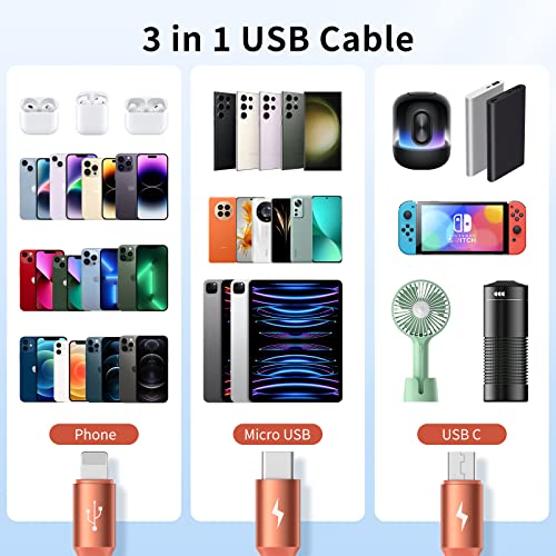 [Ampia gamma di compatibilità] Questo cavo multi USB a rullo è dotato del terminale Lightning (iOS) di tipo C per iOS, Android, PC, Samsung, Xiaomi, Huawei, Sony, Nokia, Google Pixel, Tablet, Laptop, Motorola, Switch, PS4, PS5, cuffie Bluetooth, fotocamera, smartwatch, ventola USB, power bank.
