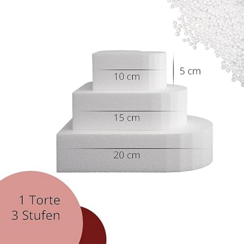 Set di torte a forma di cuore in polistirolo, 3 piani, altezza 5 cm, 10 cm, 15 cm, 20 cm