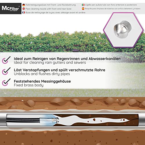 McFilter Tubo di pulizia per tubi, 15 m, 200 bar, con adattatore, ugelli rigidi e rotanti, compatibile con idropulitrice Kärcher K7
