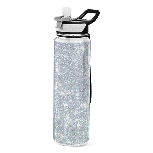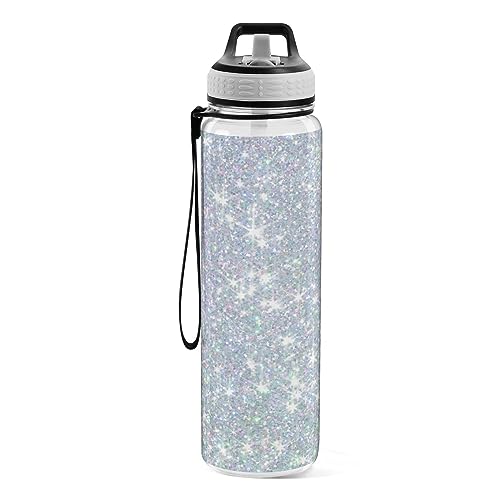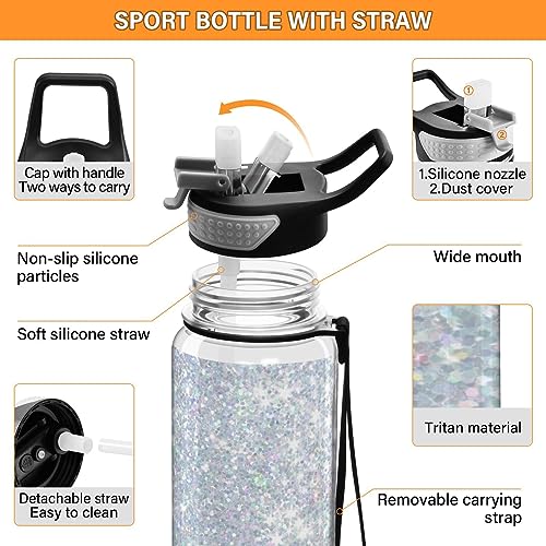 MCHIVER Bottiglia d'acqua glitterata con paillettes perlate con coperchio in silicone e cannuccia da 907,2 g, per sport, a prova di perdite, da viaggio, per scuola, palestra, all'aperto, in Tritan