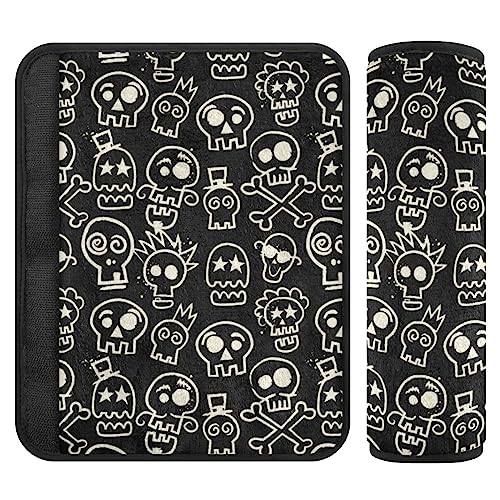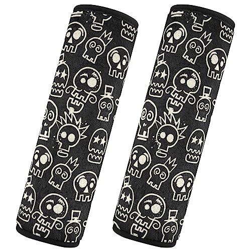 MCHIVER Nero Ruvido Teschio Auto Copertura Della Cintura di Sicurezza per Adulti Bambini Cinghie di Sicurezza Morbide Spalline Cuscinetti 2 Pezzi Auto Cuscino Per Cintura Di Sicurezza 16,5 * 16,5 cm