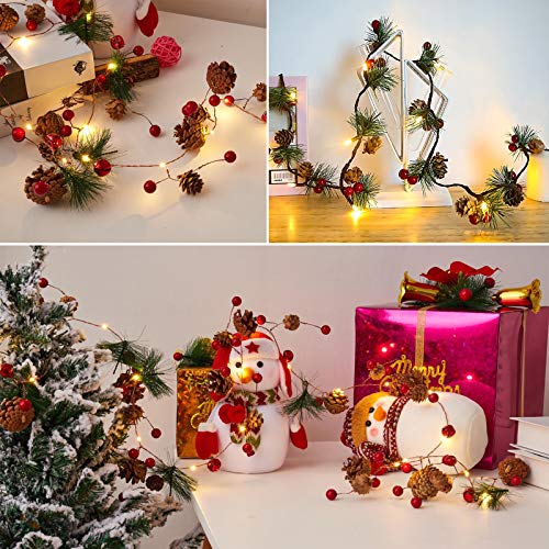 McNory Luci di stringa di Natale con pigna Campana di bacche rosse, ghirlanda con luci 20LED Luce bianca decorata a batteria per decorazioni natalizie per feste natalizie