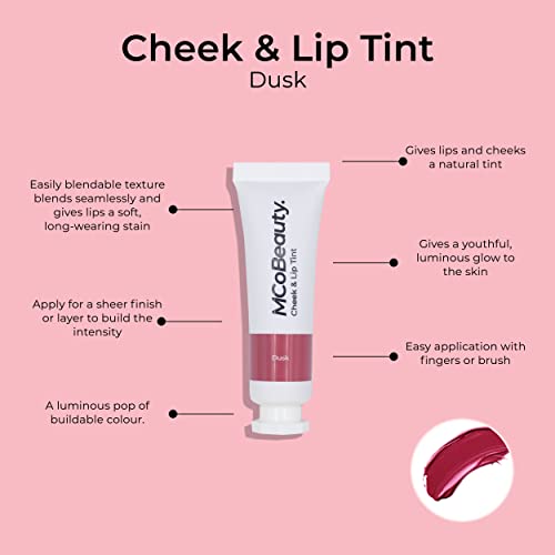 MCobeauty - Cheek and Lip Tint - for Women - Blendable Quick Drying - Natural Flush of Colour for Face & Lips - Subtle Lip Stain - Soft Radiant Blush Makeup - Dusk - 0.34 oz / 10 ml