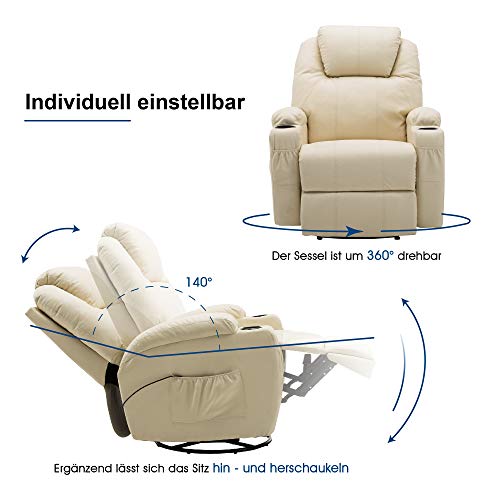 MCombo Moderno Massaggio Poltrona Reclinabile Divano Vibrante Riscaldato in pelle PU Salotto Ergonomico 360 Gradi Girevole 7020 Bianco Crema