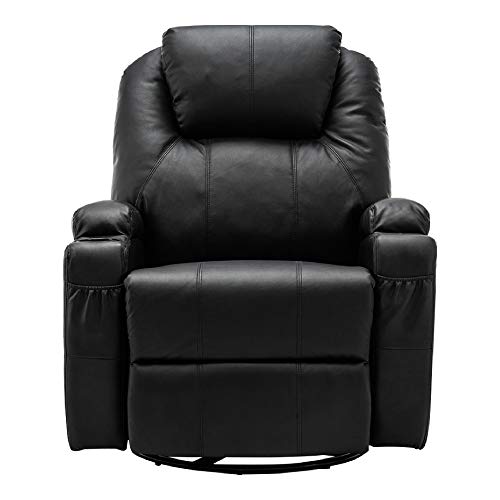 MCombo poltrona massaggiante poltrona TV poltrona relax 7020, con riscaldamento a dondolo a 360°, regolabile manualmente (similpelle nera)