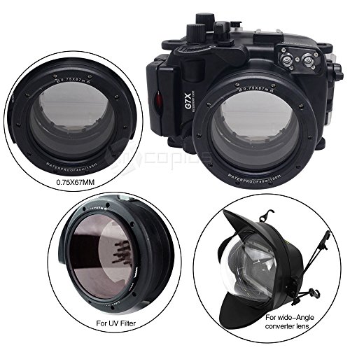 Questa custodia impermeabile è in grado di connettersi con un obiettivo a grandangolo da 67 mm, e ha due guarnizioni in gomma ad anello, che hanno una migliore tenuta.