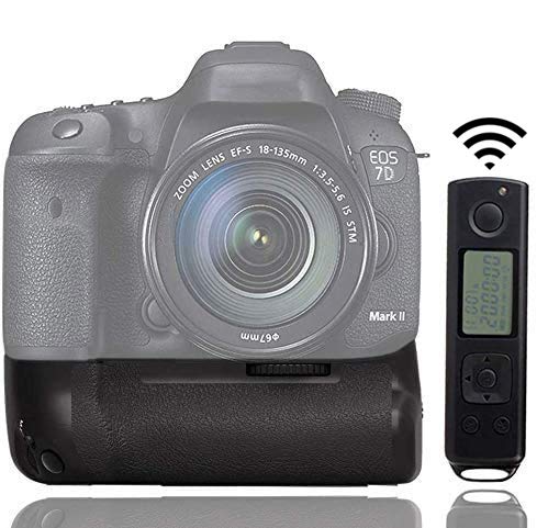 Mcoplus MK-7DRII - Impugnatura per batteria con controllo wireless da 2,4 G per 7D Mark II 2 7D2 come BG-E16, compatibile con batteria LP-E6 o 6 batterie AA + panno di pulizia Mcoplus