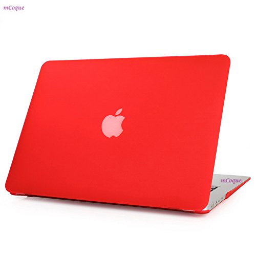 MCoque Custodia Rigida Effetto Gomma per MacBook Air da 13,3", A1466 / A1369, Non Adatto ai MacBook PRO 13,3", Colore: Rosso (con Una Pelle Europea Tastiera Trasparente Gratis)