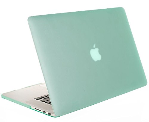 MCoque Custodia rigida effetto gomma per MacBook Pro da 15,4" con display retina ( modello A1398 senza lettore DVD ) (Con una pelle europea tastiera trasparente GRATIS), colore: Verde Chiaro (** non è compatibile con il vecchio MacBook Pro 15,4 "A1286 Modello con lettore DVD **)
