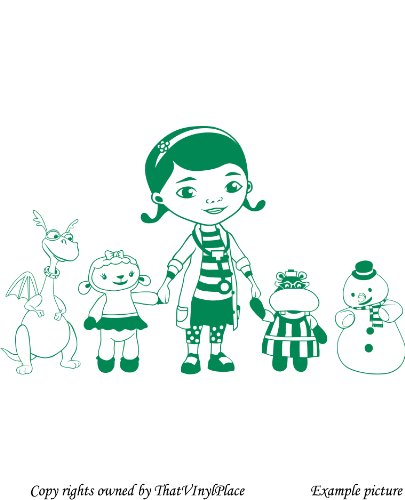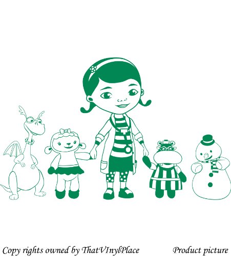 Doc McStuffins, Hallie ippopotamo, Dragon chiuso, lampada a forma di pecora e pupazzo di neve Chilly 60 cm x 98 cm colore verde medico, camera, DOC McStuffins, camera dei bambini stickers, vinile auto, finestre e autoadesivo della parete, muro di finestre Art, decalcomanie, ornamento vinile Thatvinylplace