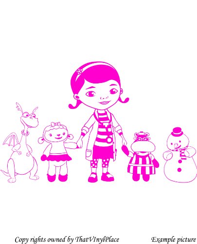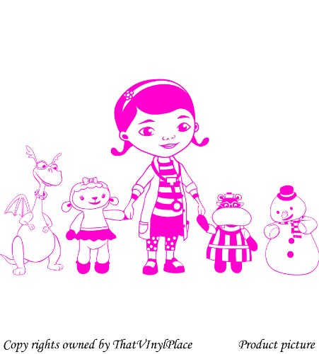 Doc McStuffins, Hallie ippopotamo, Dragon chiuso, lampada a forma di pecora e pupazzo di neve Chilly 60 cm x 98 cm colore rosa medico, camera, DOC McStuffins, camera dei bambini stickers, vinile auto, finestre e autoadesivo della parete, muro di finestre Art, decalcomanie, ornamento vinile Thatvinylplace