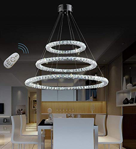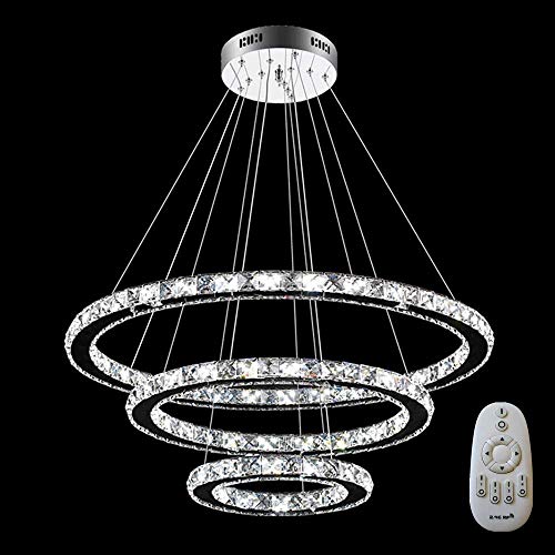 MCTECH, lampadario da soffitto in cristallo, design moderno e di lusso, con due anelli 96w Dimmbar