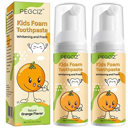 Mcukv Dentifricio Schiuma Bambini, Dentifricio in Schiuma Sbiancante a Basso Contenuto di Fluoro con Formula Naturale per Spazzolino a Forma di U dai 3 Anni in su, Riduce la Placca (Arancio)