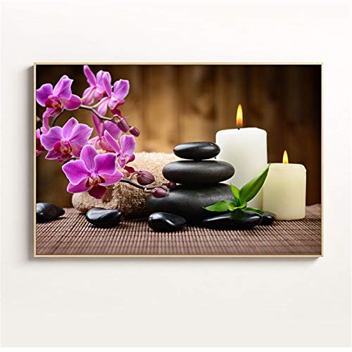 MCYGSD Quadro Moderno Spa Stones Zen Candele Di Quadri Su Tela Fiori Di Orchidea Poster Da Parete Per Decorazioni Per Il Bagno Decorazioni Per La Casa 40x60cm x1 Senza Cornice