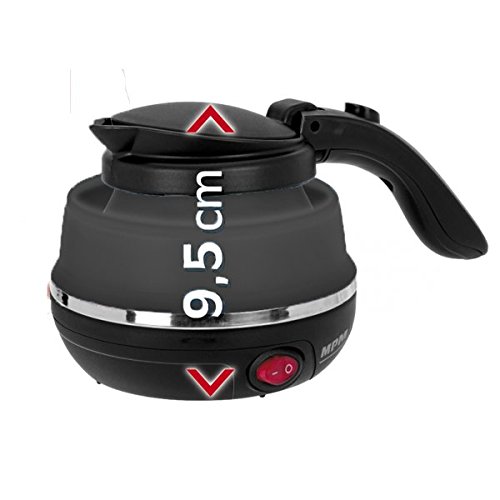MPM MCZ-73/C Bollitore Elettrico Pieghevole, 0,5L, Silicone, Senza BPA, Elemento Riscaldante Nascosto, Coperchio Automatico, 750W, Nero, 0.5 Litri