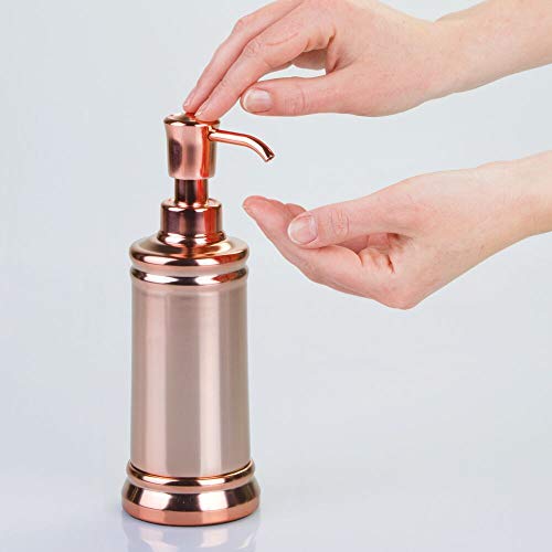 MDesign Set da 4 Accessori Bagno in Metallo - Portaspazzolini, Dispenser Sapone Schiuma, portasapone e Bicchiere - Bicchiere per Make-up e Altri Usi - Oro Rosato