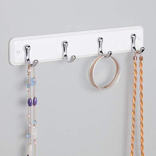 MDesign Appendiabiti da Parete - attaccapanni per l'Ingresso e per Il Bagno - 4 Ganci Appendiabiti per Giacche, Accappatoi e Asciugamani - Colore: Bianco, Cromato