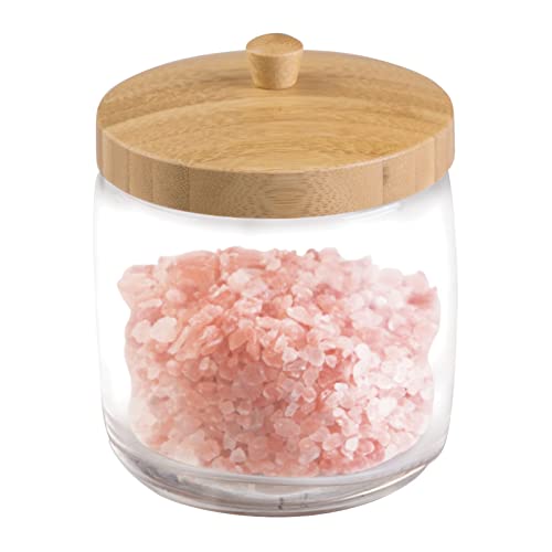 MDesign Barattolo Bagno per Batuffoli Cotone, Tamponi, Dischetti Struccanti - Confezione da 2, Trasparente/Naturale