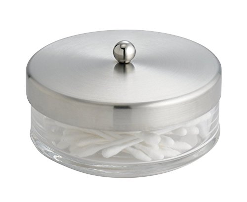 MDesign Barattolo Bagno in Vetro per Batuffoli di Cotone, Tamponi, Dischetti Cosmetici - Corto, Trasparente/Acciaio Inox Spazzolato