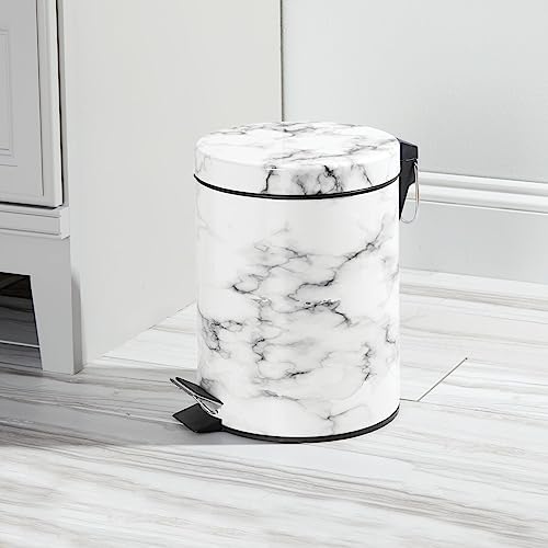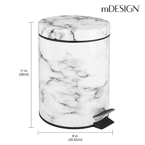 MDesign Bidone spazzatura rotondo con volume di 5 L - Perfetto come contenitore raccolta differenziata per il bagno, la cucina o l'ufficio - Pattumiera a pedale in metallo e plastica - color marmo
