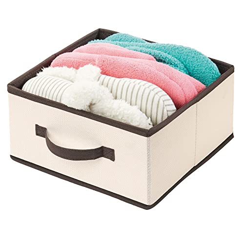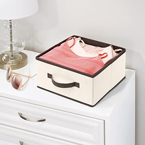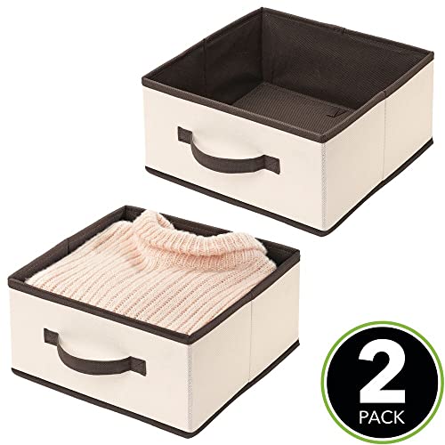 MDesign Set da 2 Capienti scatole per armadi in tessuto - Organizer armadio, cassetti o ripiani con maniglia frontale - Scatole porta oggetti aperte per indumenti - crema e marrone