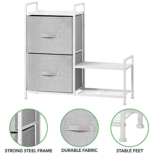 MDesign Cassettiera con due larghi e profondi cassetti in stoffa - Comò in legno e metallo per ingresso, lavanderia o camera da letto - Dotato di ampia mensola e scarpiera laterale - grigio