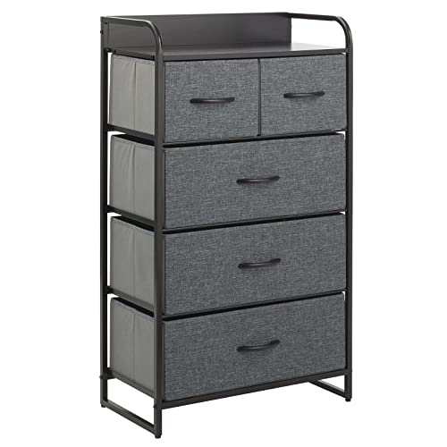 MDesign Cassettiera a 5 cassetti - alto mobile con cassetti per camera da letto, soggiorno o corridoio, portaoggetti in metallo, MDF e tessuto - nero/carbone