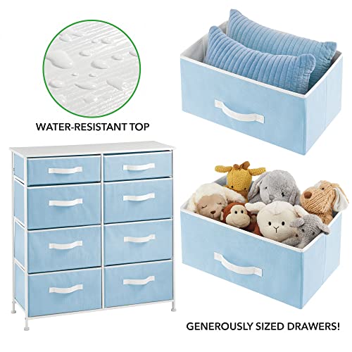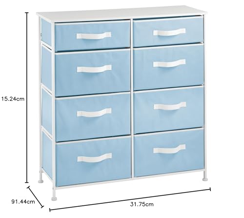 MDesign Cassettiera moderna ideale per camera da letto, corridoio, bagno, ingresso ecc. - Canterano in tessuto, con struttura in metallo resistente - Comò con 8 ampi cassetti - azzurro/bianco