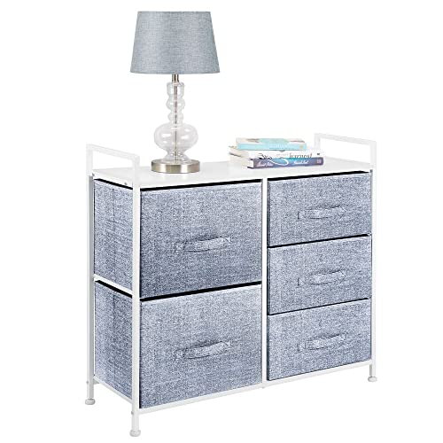MDesign Cassettiera moderna a 5 tiretti estraibili - Canterano a cassetti larghi per camere e camerette - Comò con motivo a tinta unita in fibra sintetica e metallo - blu/bianco