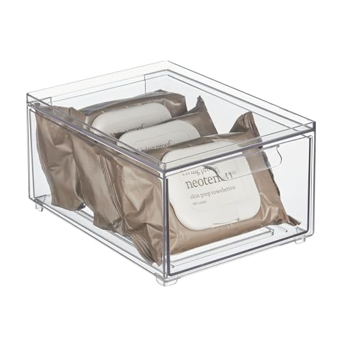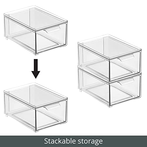 MDesign Cassetto plastica impilabile - Pratico organizer armadio in resistente plastica ideale per scarpe e accessori - Portascarpe plastica impilabile per accessori e oggetti - Set da 4 - trasparente