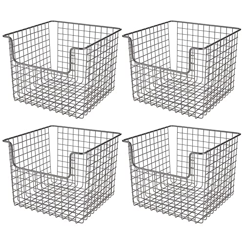 MDesign Set da 4 Cesti portaoggetti in filo metallico - Organizer versatile con manici per cucina o dispensa - Contenitore universale in metallo con manici - bronzo