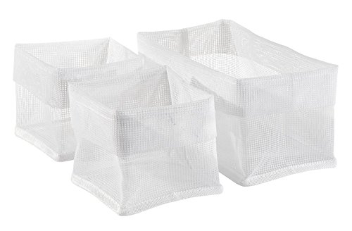 MDesign Cestini Bagno in Tessuto a Rete - Contenitori Portaoggetti Bagno per cosmetici, profumi, creme e altri accessori. - Set da 3 cestelli quadrangolari - Colore: bianco