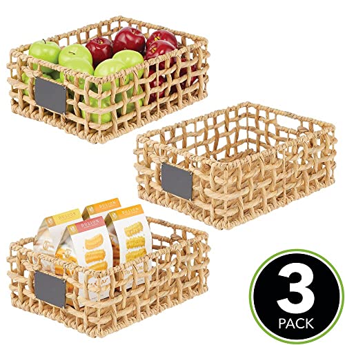 MDesign Set da 3 cestini portaoggetti per armadi - Scatole organizer in giacinto intrecciato con etichetta - Capienti scatole contenitori con maniglie ideali per bagno, camera, ufficio - naturale