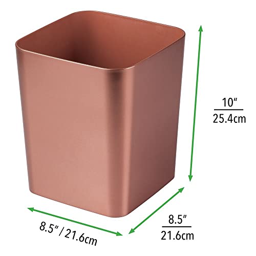 MDesign Cestino per la carta in plastica, compatto per il bagno, in plastica infrangibile, quadrato, per casa e ufficio, oro rosa