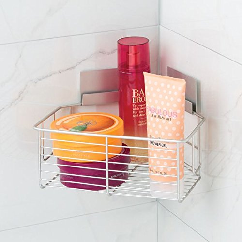 MDesign Cestino Doccia angolare e portaoggetti Doccia in Metallo Spazzolato - Autoadesivo e Senza Viti - Organizer portasapone Doccia da Appendere - Argento