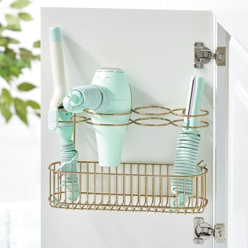 MDesign Cestino da Parete per i Prodotti per la Cura dei Capelli - Compatto Contenitore in Metallo da Appendere al Muro o ai mobili - Porta Piastra e asciugacapelli per Fare Ordine in Bagno - Ottone