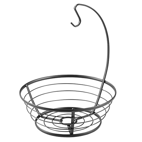 MDesign cesto per frutta con porta banane in metallo - Ciotola moderna per frutta con porta banane per il piano di lavoro - Pratico cesto per frutta e verdura - Nero opaco