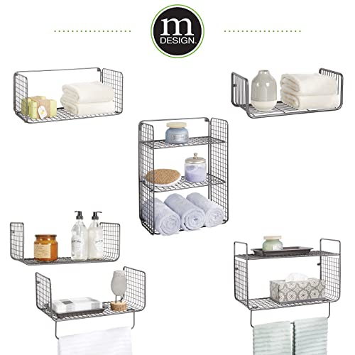 MDesign Cesto portaoggetti da bagno richiudibile con 3 ripiani - Pratico scaffale da parete con griglia di metallo - Cestino da parete per asciugamani, flaconi e accessori da bagno - grigio