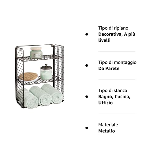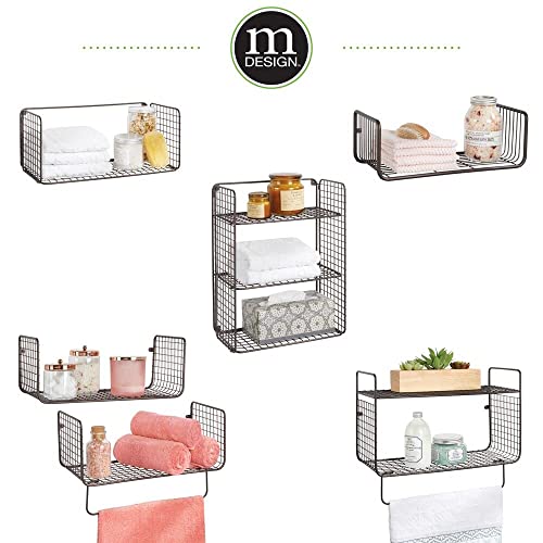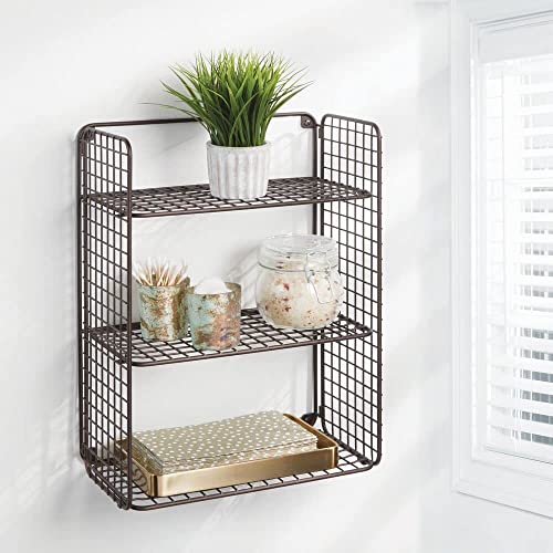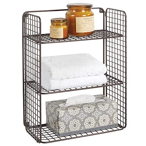 MDesign Cesto portaoggetti da bagno richiudibile con 3 ripiani - Pratico scaffale da parete con griglia di metallo - Cestino da parete per asciugamani, flaconi e accessori da bagno - bronzo