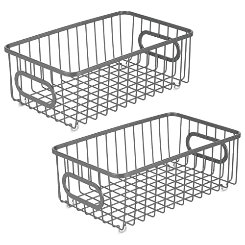 MDesign Set da 2 Cesto portaoggetti in metallo e plastica - Organizer compatto e versatile con manici integrati - Contenitore universale reticolato ideale per cucina o bagno - grigio